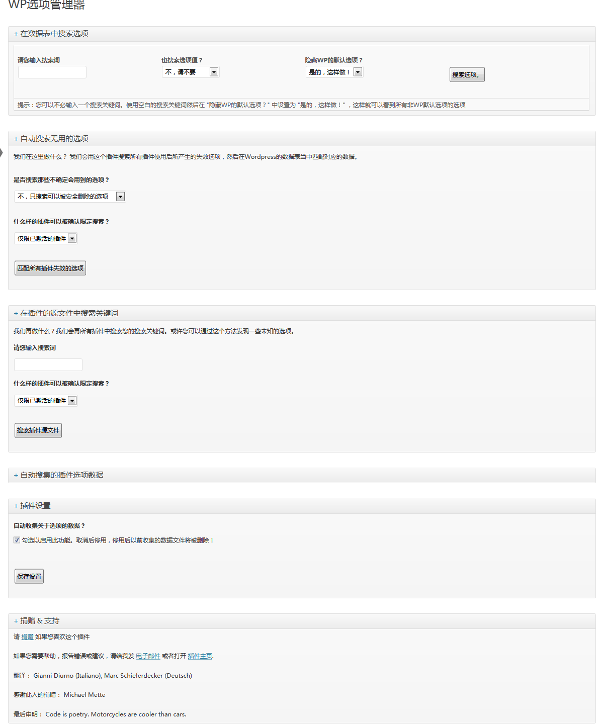 这个插件主要是清除一些插件或者主题使用过后在wp-options残留的数据,来保持wp-options数据表的简洁