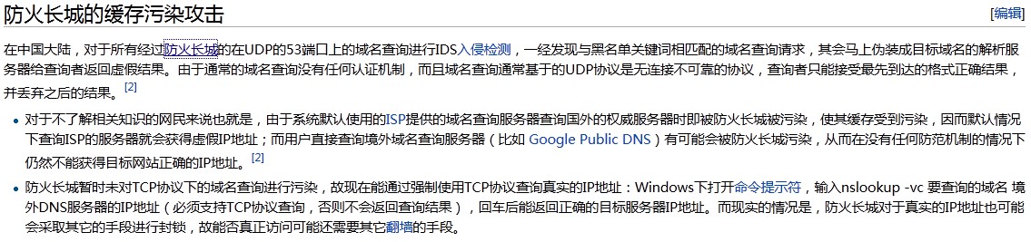 其实这个DNS缓存投毒就是这个破“墙”搞出来的产物…