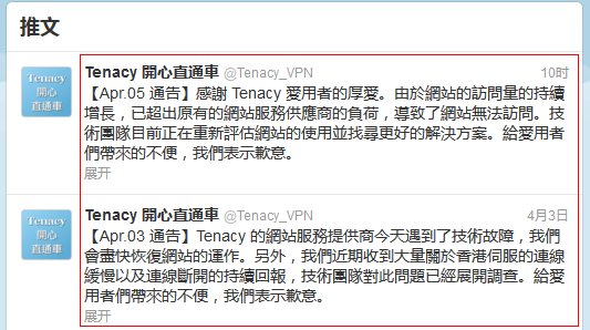 刚刚到推特上去看了看,Tenacy的帐号发微博说明了原因:
